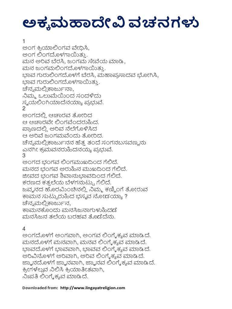 Akkamahadevi Vachanagalu In Kannada Small / Will a swan ever yearn for a small ditch and not for a lake?